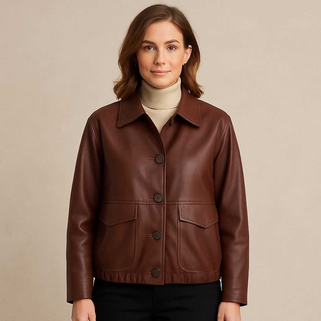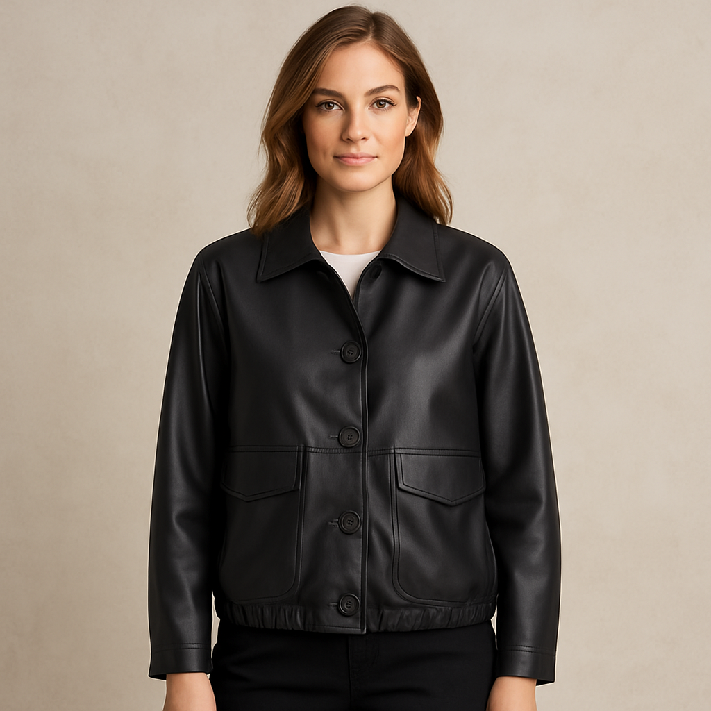 WALLIN – Denna korta damjacka i syntetläder kombinerar stilren elegans med trendig design. Tillverkad i mjukt PU-material som ger en exklusiv look samtidigt som den är lätt och bekväm att bära. Perfekt för både höst och vår, och enkel att matcha med allt från jeans till kjol. Knäppningen framtill ger en klassisk touch som aldrig går ur tiden.