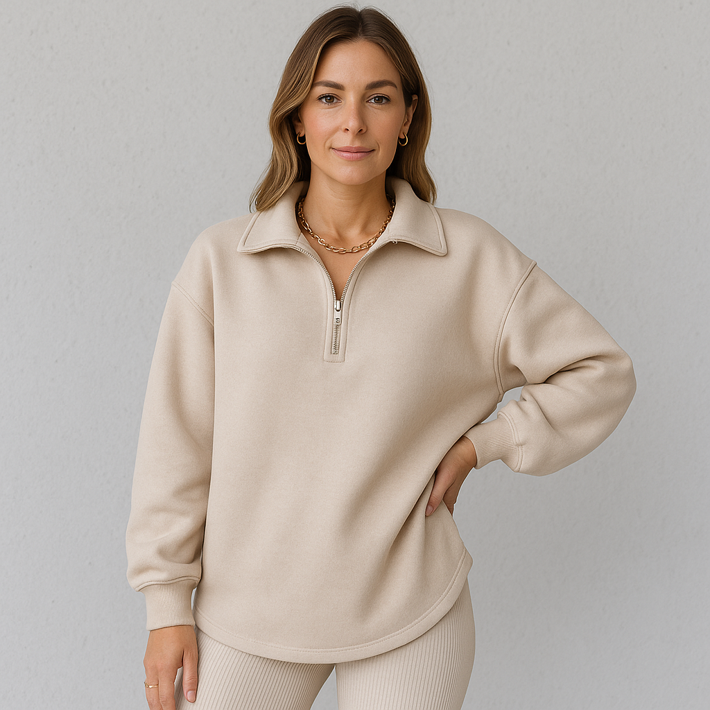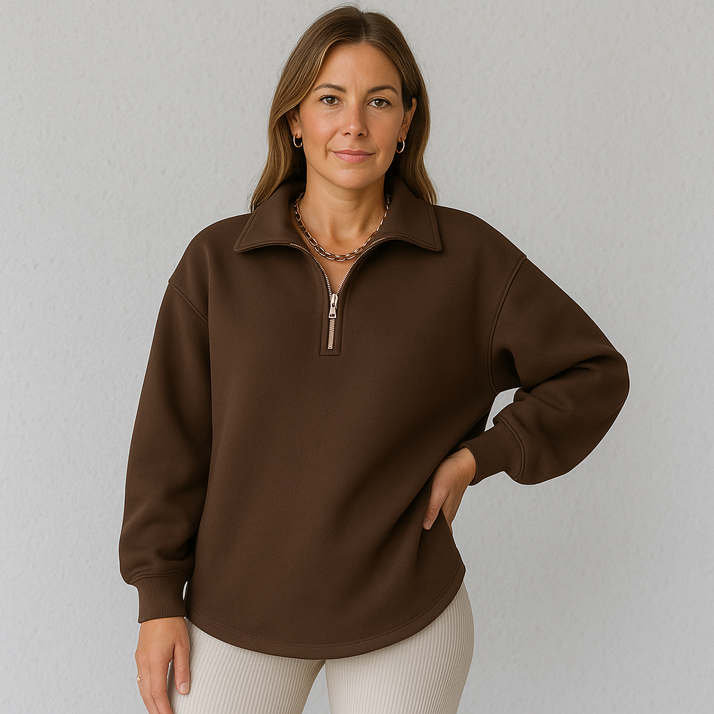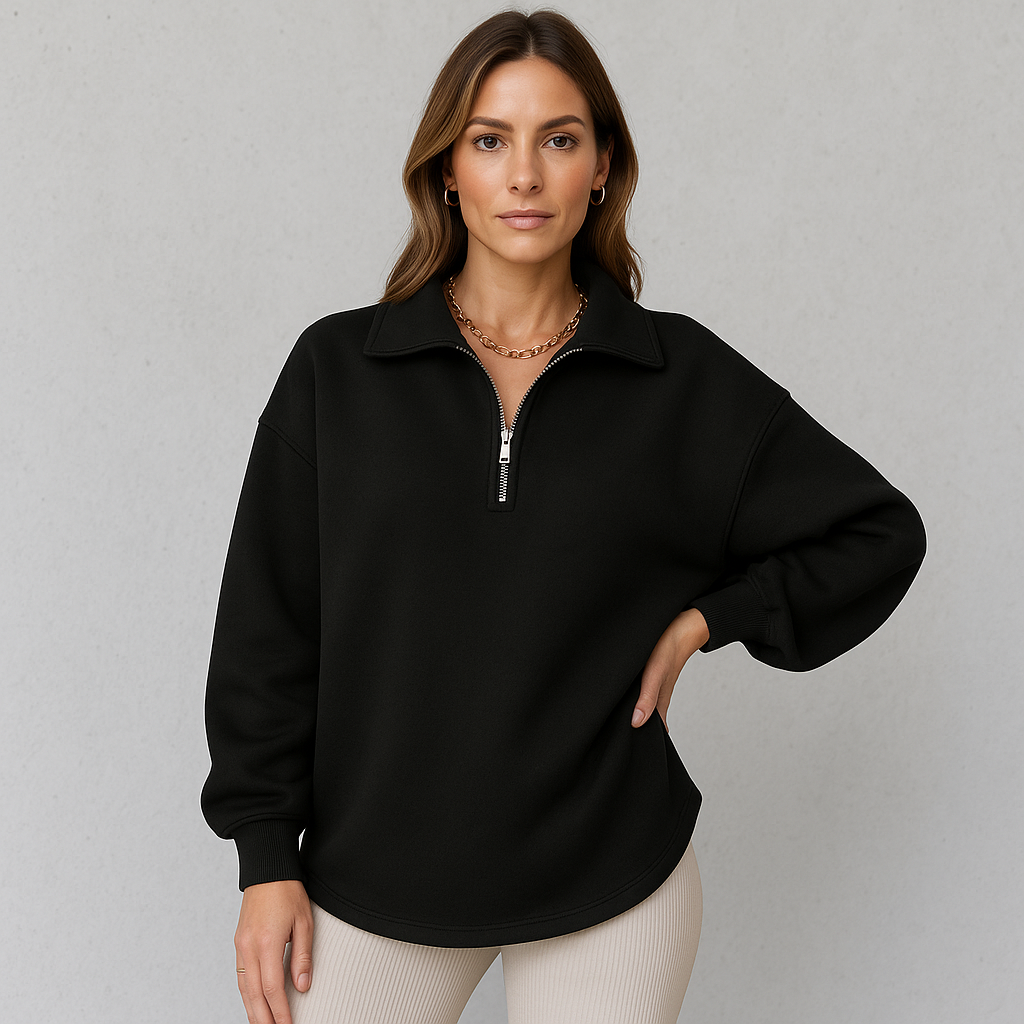 WALLIN – Svart Långärmad Damtröja med Halv Dragkedja | Stilren, Bekväm och Trendig Pullover för Höst & Vinter